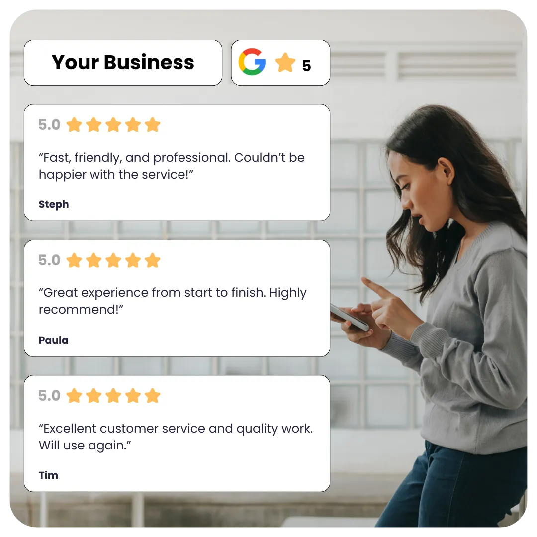 No new apps. No extra steps. Just automated, hands-off review growth that makes you look as good online as you do in real life.